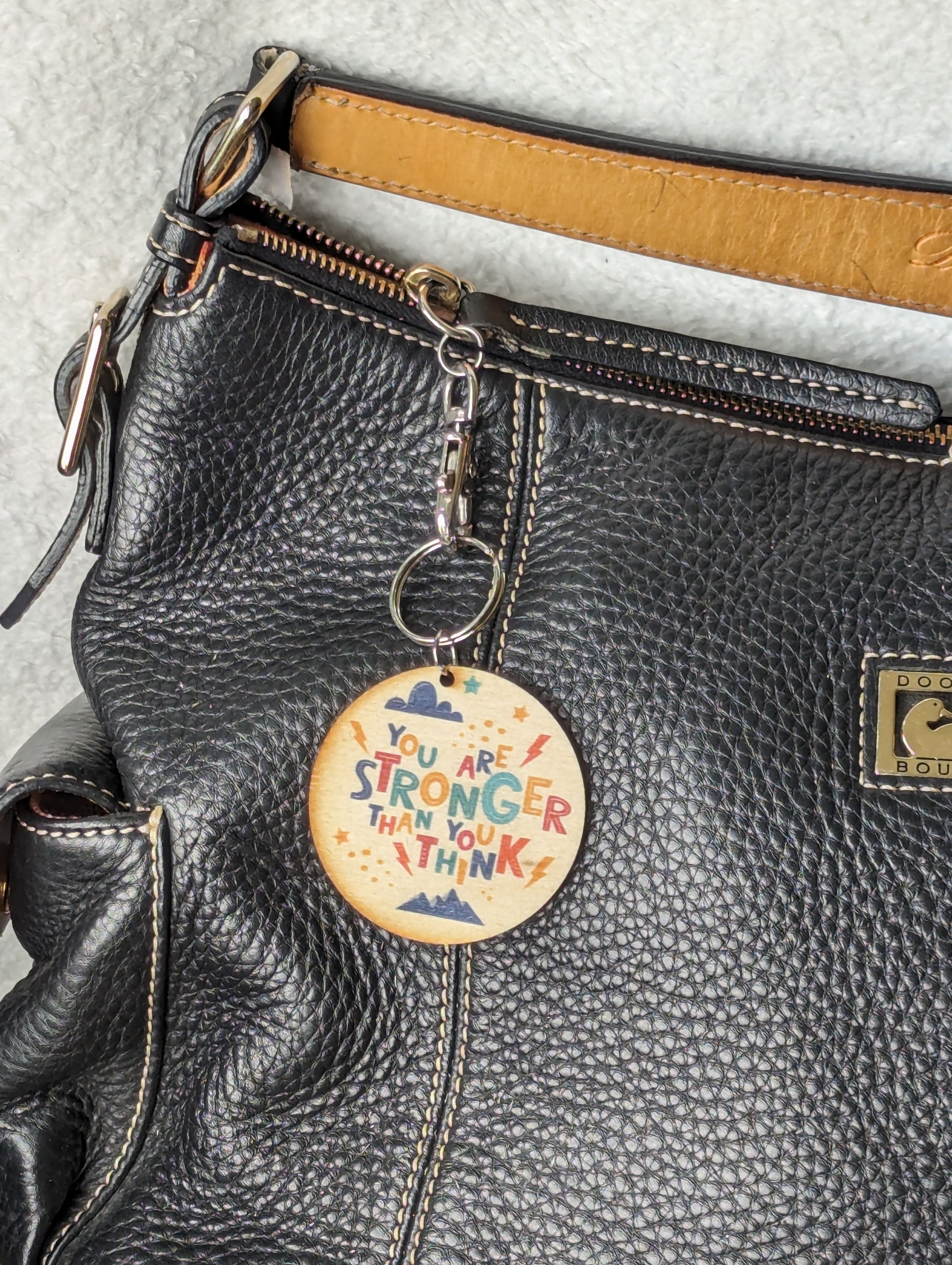 Uplifting Colorful Printed Birchwood Keychain Keys Gift Kitchen Round Magnet Refrigerator Office Filing Cabinet USA Made You Are Stronger Than You Think