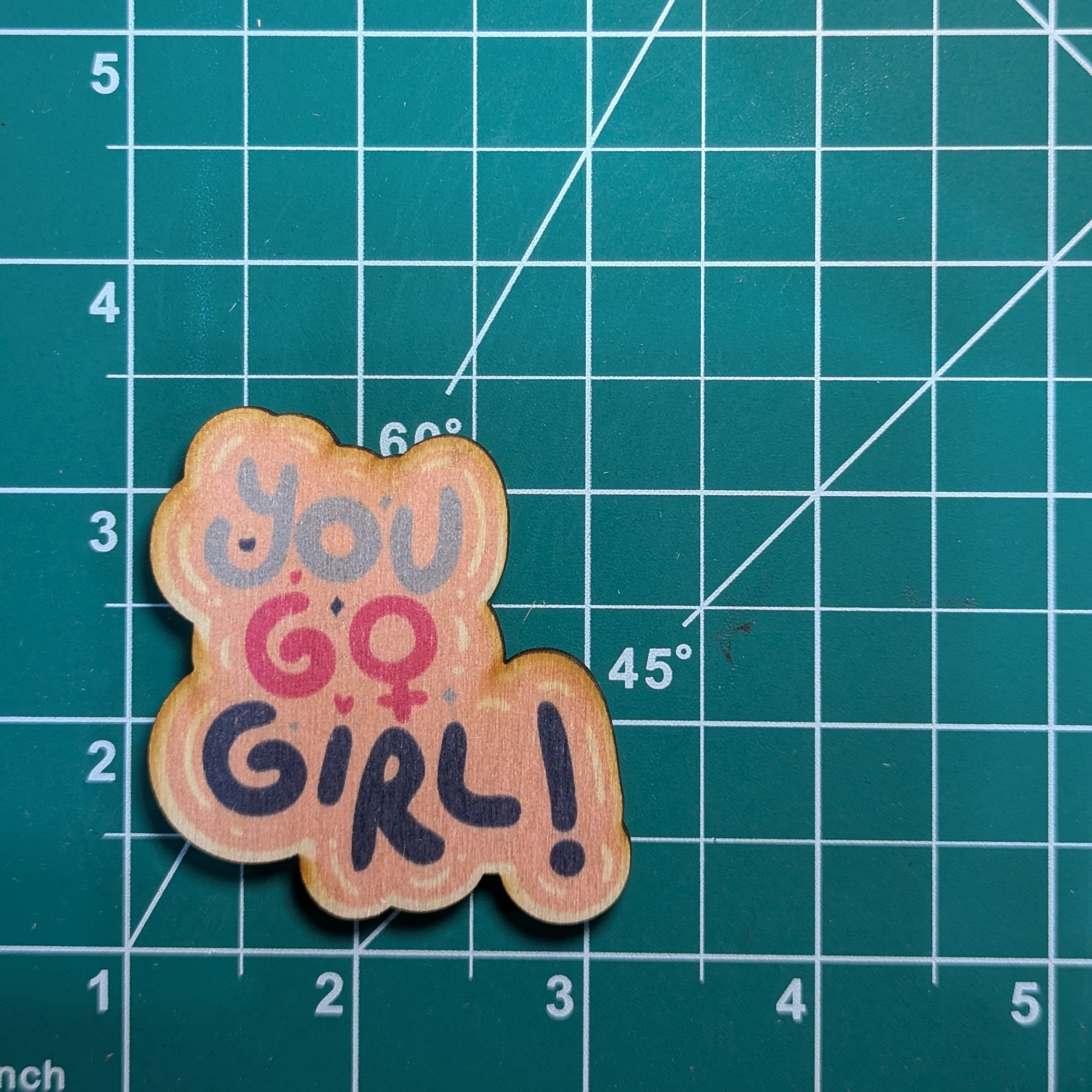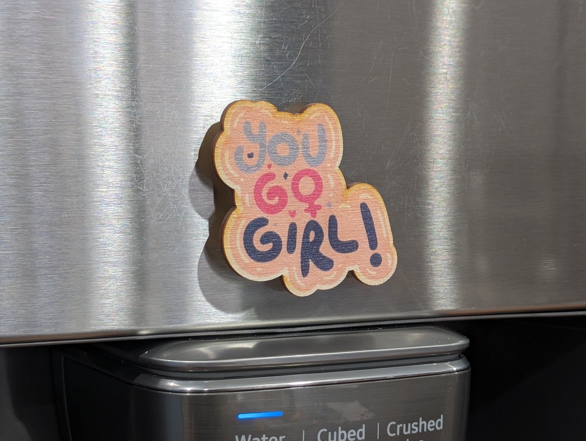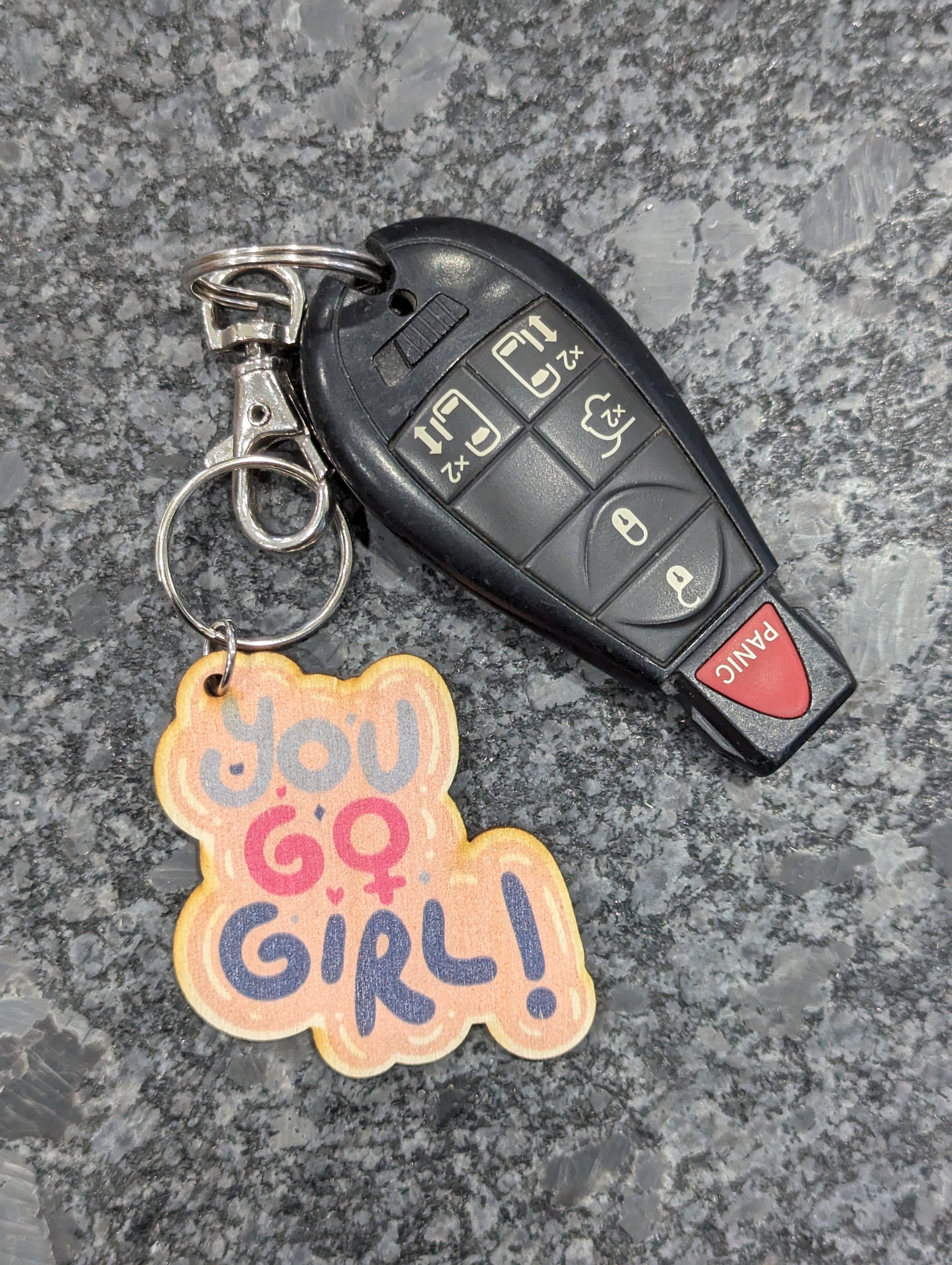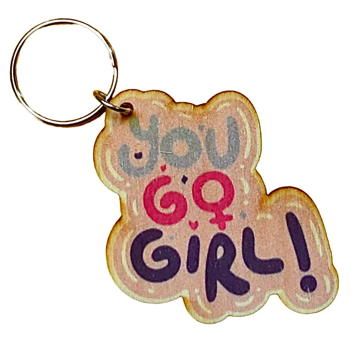 Cute Color Printed Birchwood Keychain Keys Gift Kitchen Magnet Refrigerator Friend Workspace Fun Inspirational Backpack USA Made You Go Girl