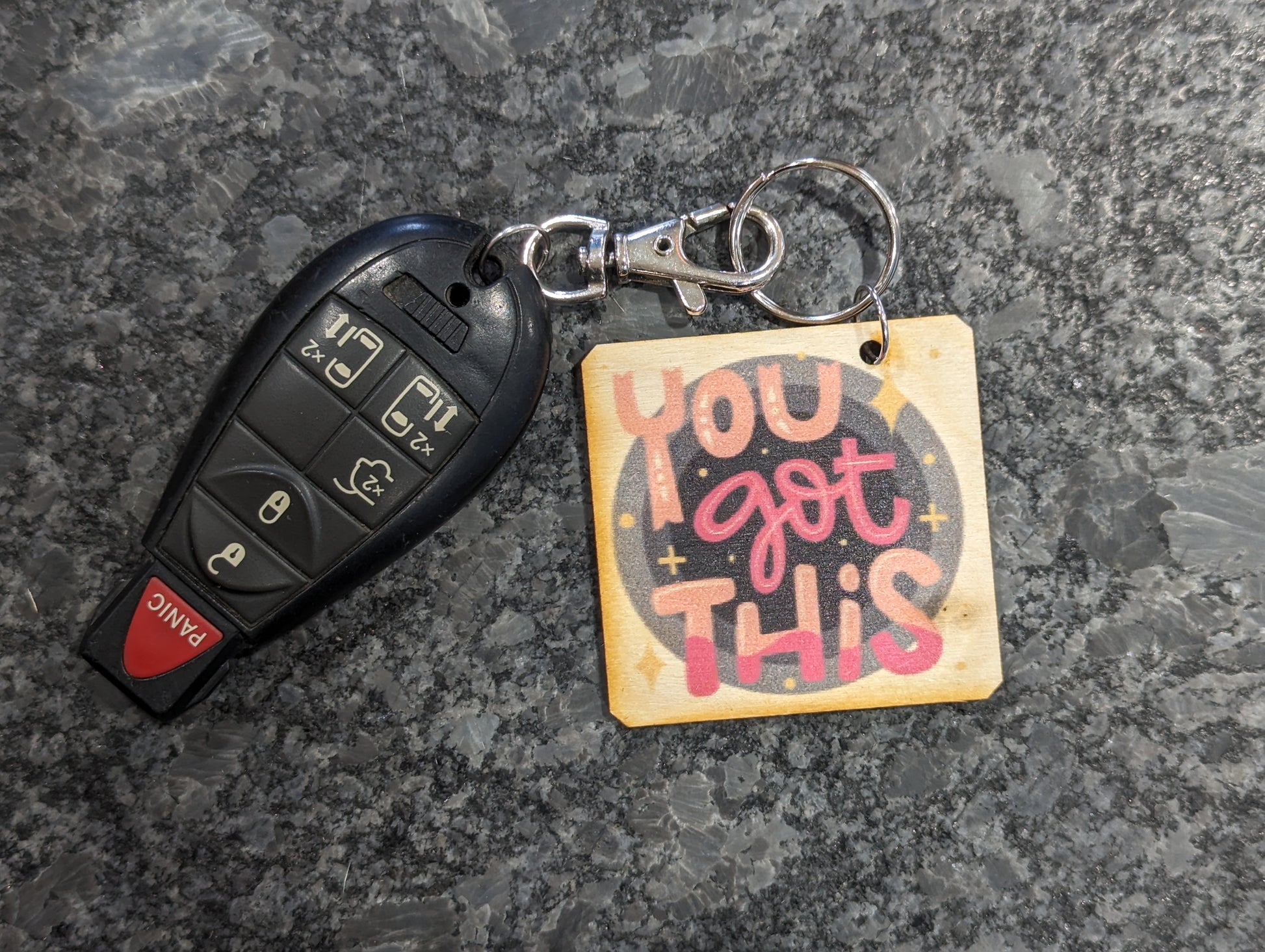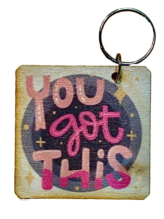 Colorful Fun Inspirational Magnet Printed Birchwood Square Shape Keychain Refrigerator Key Filing Cabinet Gift Employee USA Made You Got This