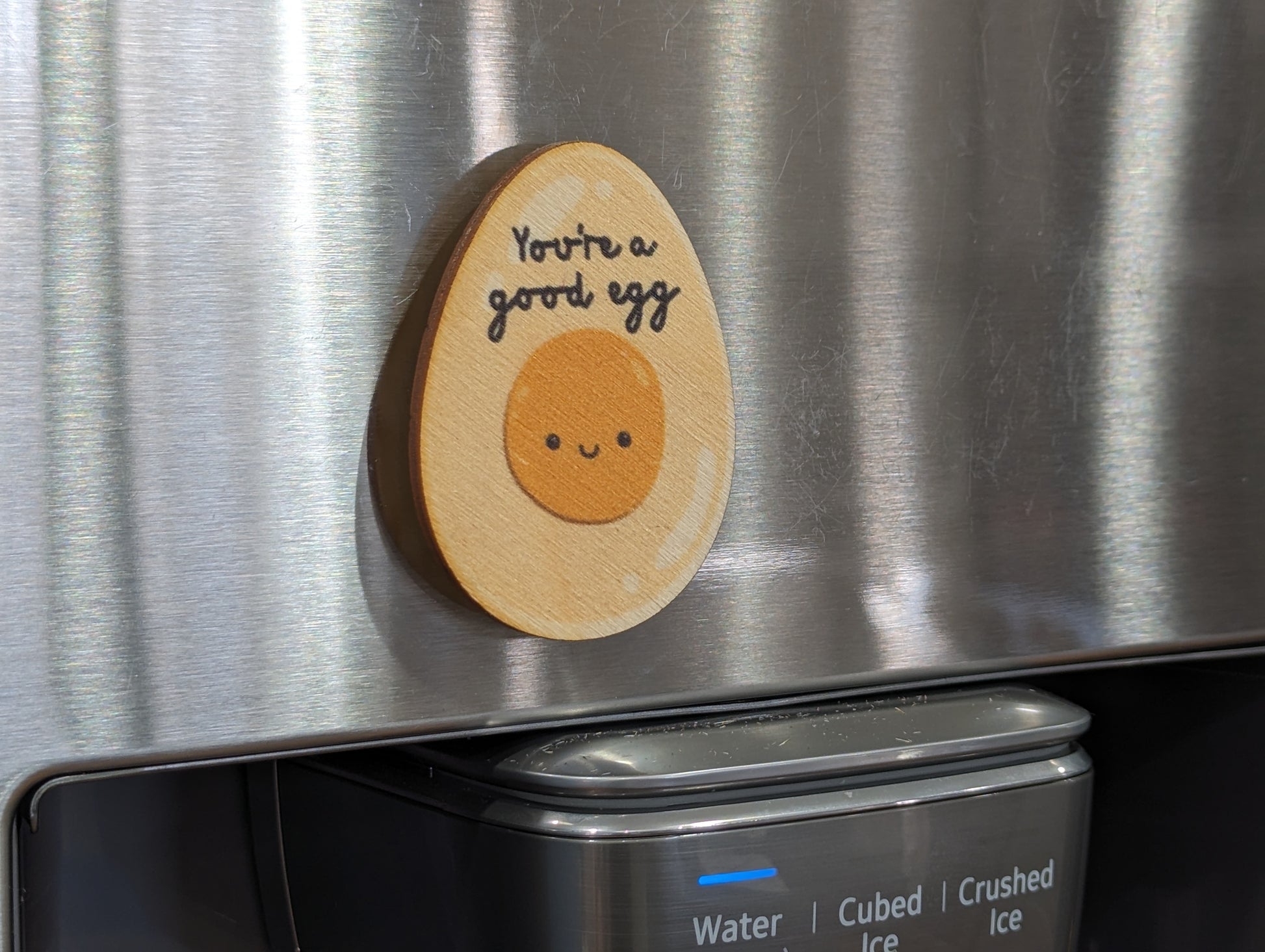 Fun Keychain Cute Gift Magnet Adorable Birchwood USA Made Humorous Fried Egg Shape Oval Thoughtful Unique USA Made Thank You Refrigerator Employee Gift Office Filing Cabinet you're A Good Egg