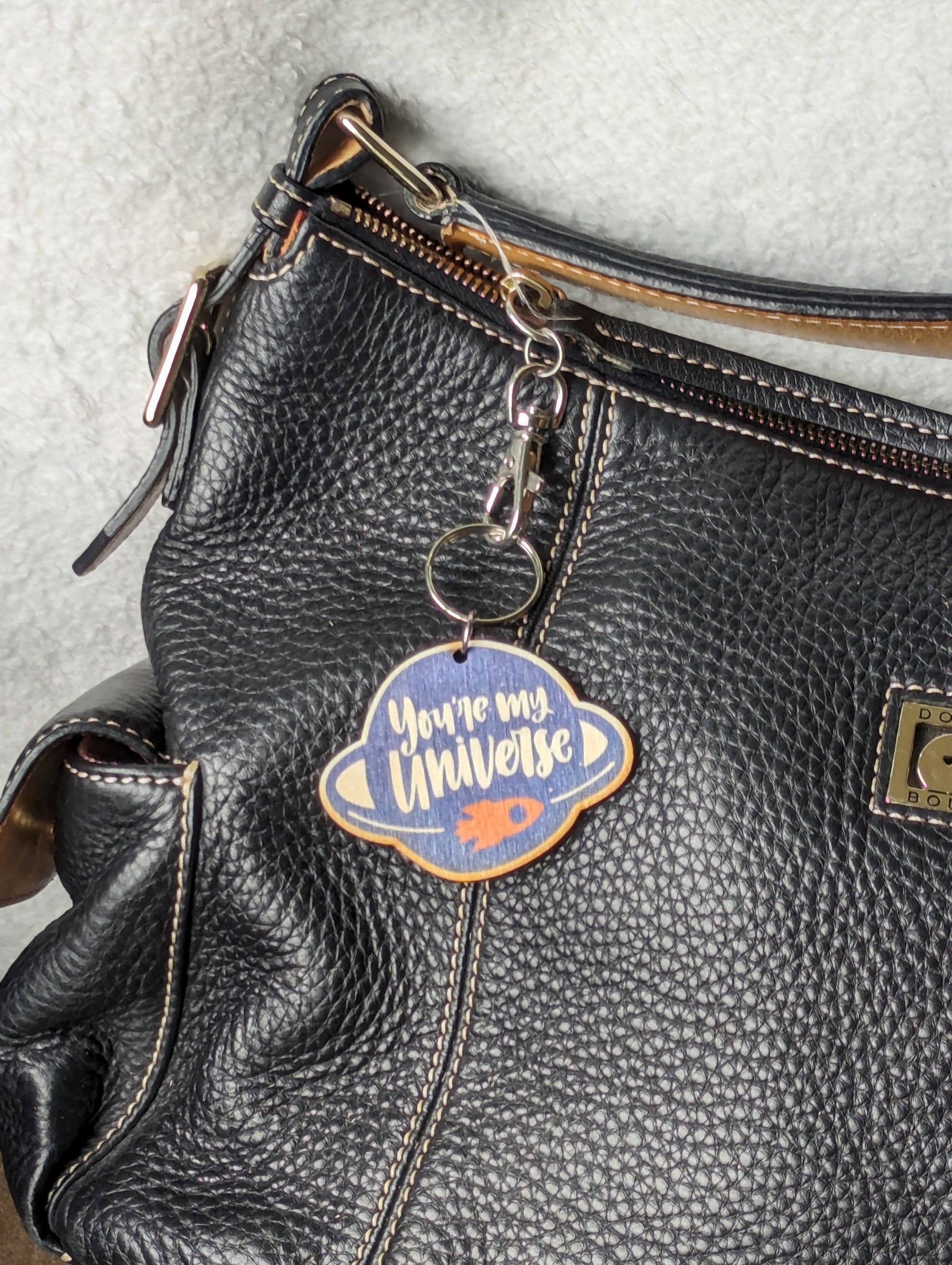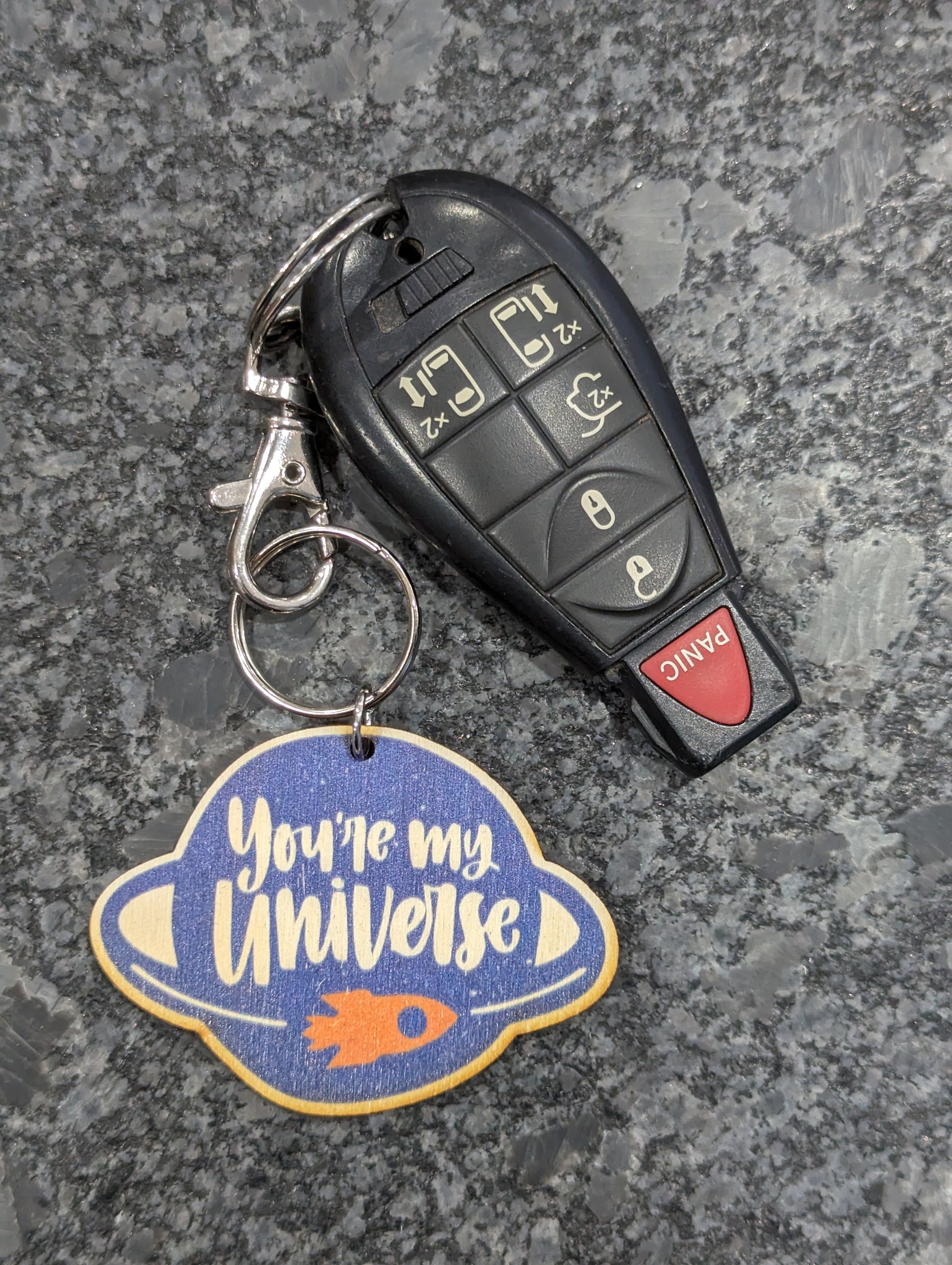 Magical Colorful Quirky Printed Birchwood Keychain Keys Gift Kitchen Magnet Refrigerator Friend Workspace Fun USA Made You're My Universe